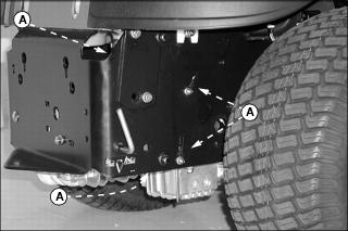 Service SteeringChecking and Adjusting Steering Tracking and Creep1. Park machine safely. (See Parking Safely in the Safety section.) 2. Check rear tire pressure and adjust, if necessary. The tires should have equal air pressure. (See Specifications section.) 3. Start the engine and drive the Spin-Steer to a large, open area. 4. Check tracking and creep and adjust, if necessary. Check Tracking· Drive the machine forward guiding the steering wheel in a straight path. Do not steer the machine to the left or right. · The machine should follow a straight path over an extended distance. · Adjust tracking if necessary. Do not over-adjust. Check Steering Creep· Stop the machine on a flat level surface. · The machine should not move to the left or right. Adjust Steering Tracking and Steering Creep· If the machine begins turning to the left, rotate adjusting nut (A) clockwise. · If the machine begins turning to the right, rotate adjusting nut (A) counterclockwise. Replacing Steering Filters1. Park machine safely. (See Parking Safely in the Safety section.) 3. Remove tie strap (A) from right filter and remove vacuum filters (B), one from each steering actuator (C). 4. Position two new filters (B) as shown and snap into place. 5. Secure right filter with tie strap (A) to keep away from fan. Cleaning Area Around Transmission and Steering Switches1. Park machine safely. (See Parking Safely in the Safety section.) 2. Clean grass and debris from area around transmission and steering switches (A) with rag, brush, vacuum or compressed air. |