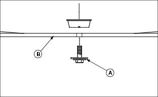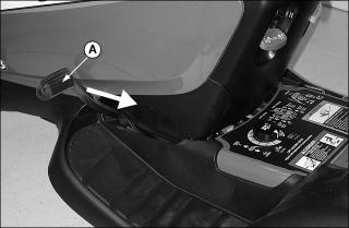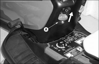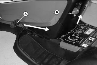 3. Lower mower to the ground and pull up on lift lever (A) to lock mower in the down position.