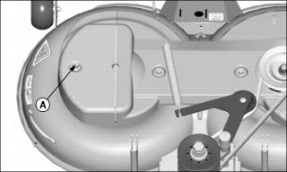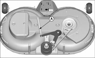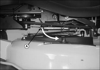 NOTE: To ease spring tension, a gripping device may be used, such as an adjustable open-end wrench, to hold the end of tensioning lever (A) when releasing belt tension. 3. Hold belt tensioning lever (A) securely and slowly pull it all the way out toward you as far as it will go to release belt tension.