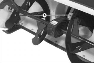3. Move chain shield (A) left to provide tension on the chain. Deflection should be 4.7–10 mm (3/16–3/8 in.)