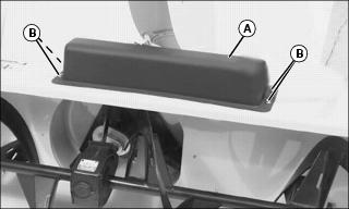 3. Turn auger or blower impeller to line up holes in shaft. Remove spare shear bolt (B) from snowblower.