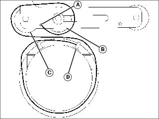 4. Wrap cable clockwise around discharge chute and put it around threaded stud and behind washer and lock nut (D).