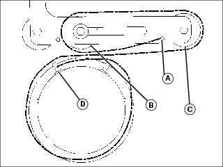 4. Wrap cable counterclockwise around discharge chute and put it around threaded stud and behind washer and lock nut (D).
