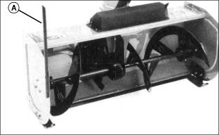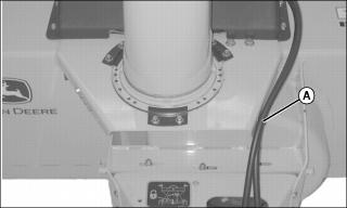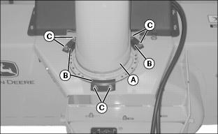 1. Put light coat of John Deere Moly High Temperature EP Grease or an equivalent onto discharge chute base and install discharge chute (A).