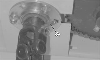 4. Align holes on sprocket shaft with holes in driveshaft and install rolled pin (C) through both shafts.