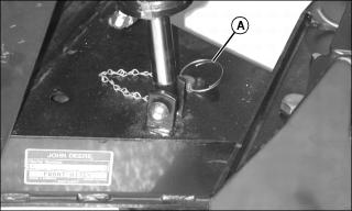 2. Insert locking pin assembly (A) in front hole on front hitch and fasten with spring locking pin.