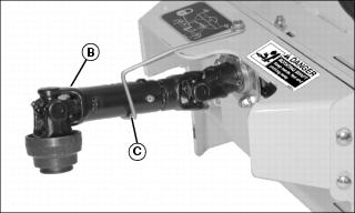 3. Install driveshaft (B) on support rod (C).