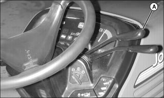 • Pull lever (A) back to rotate chute to the right.