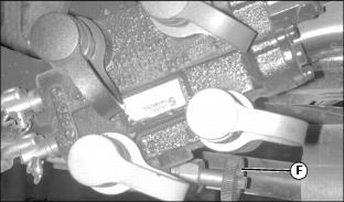 7. If machine is equipped with lockout valve (F), turn valve clockwise until closed to lockout mower and rear hydraulic implement lift.