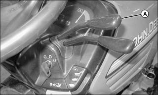 1. Pull back top hydraulic lift lever (A) to raise mower deck to highest (transport) position.