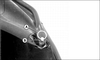 2. Remove locking rings (A) from studs (B) located on both rear lower corners of cover.
