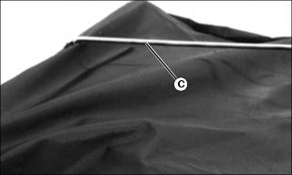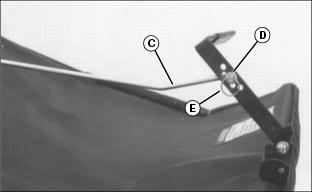 5. Remove cover latch rod (C) (end with two bends) from cover.