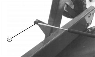 2. Install rod end of gas cylinder (B) on ball joint closest to wheel assembly.