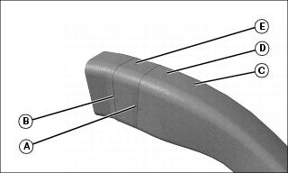 5. Install other end of side support tubing on stud (E) and fasten with spring locking ring (D).