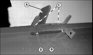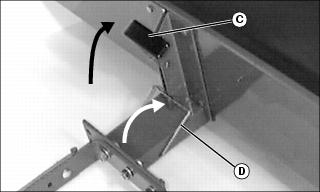 4. Push latch (D) into notch in lift lever bracket to locked position.