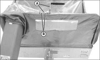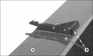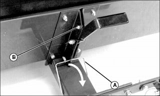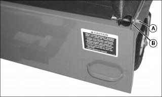 Install lift bracket (A) on cover using two 1/4x1-1/2 in. carriage bolts and 1/4 in. lock nuts (B).