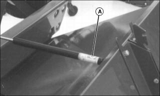 1. Install barrel end of gas cylinder (A) on ball joint closest to cart box.