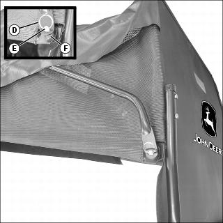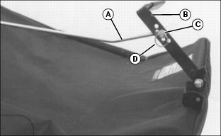 NOTE: Make sure bolt goes through mesh material (under cover flap) and support rod under cover. Put lock nut to inside of cover.