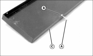 1. Install two tailgate pins (A), lock washers and hex nuts (B) in tailgate (C) at dimpled holes.