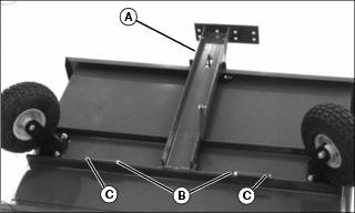 1. Attach drawbar assembly (A) to cart box with two 3/8x4-1/2 in. hex head bolts (B) and 3/8 in. lock nuts (C).