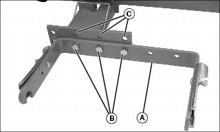• X475 AWS tractor: Use top holes in drawbar (C).