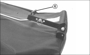 5. Push cover latch bracket (E) rearward to latch cover at rear of cart box.