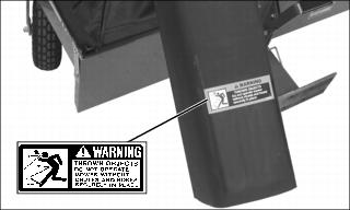 The machine safety labels shown in this section are placed in important areas on your machine to draw attention to potential safety hazards.
