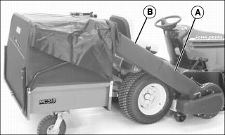 4. Remove upper end of POWER FLOW chute from cart chute (B).