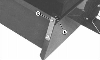 3. Release cover pivot rod (D) by pulling cover attaching latch (E) (on upper right corner of cart box) outward. Lift cover free of hole in box on upper left corner.
