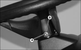 2. Install mower discharge chute to mower deck with two bolts (A) and lock nuts (B).