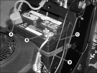 3. Connect positive (+) battery cable (A) to battery.