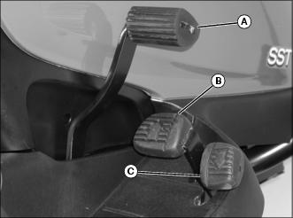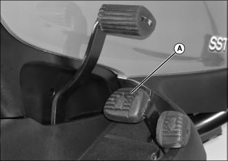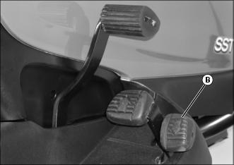 NOTE: The mower and engine will stop as the reverse foot pedal is depressed with mower engaged.