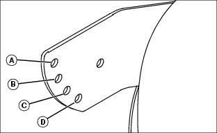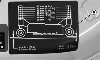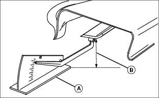 4. Check that the actual height of cut matches the reading on the cutting height knob. if they do not match, adjust lift links (B) on both sides of mower.