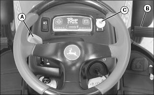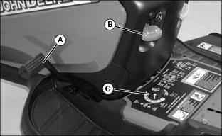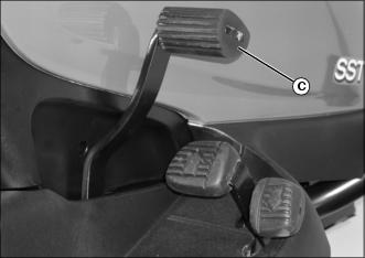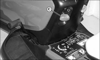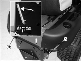 7. Raise mower deck to the transport position and lock lift lever (C). If lift lever does not lock, lower the mower deck.