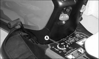 3. Turn cutting height knob (A) to desired cutting height. Mower will be at that approximate cutting height when it is lowered.