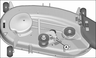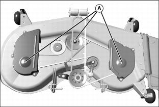 · Lubricate two mower spindles grease fittings (A) with two pumps of general all-purpose grease.
