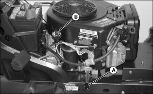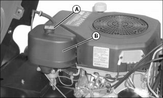 5. Loosen knob (A) to remove air cleaner cover (B).