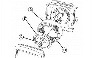 · Remove knob (D) and plate (E).