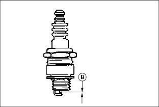 8. Check plug gap (B) with a wire feeler gauge. To change gap, move the outer electrode. Gap must be: