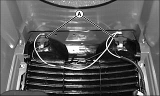 Removing1. Park machine safely. (See Parking Safely in Safety section.) 3. Disconnect negative (-) battery cable (A). 4. Push red cover (B) away from positive (+) battery terminal and remove cable from battery. Installing