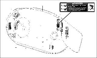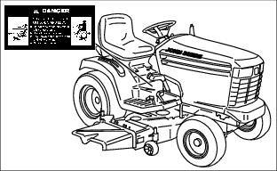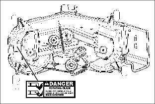 SafetyUnderstanding The Machine Safety LabelsThe machine safety labels shown in this section are placed in important areas on your machine to draw attention to potential safety hazards. On your machine safety labels, the words DANGER, WARNING, and CAUTION are used with the safety-alert symbol. DANGER identifies the most serious hazards. The operator's manual also explains any potential safety hazards whenever necessary in special safety messages that are identified with the word, CAUTION, and the safety-alert symbol. WARNING: AVOID SERIOUS INJURY OR DEATH· Drive up and down slopes, not across · If machine stops going uphill, stop blade and back down slowly · Keep safety devices (guards, shields, and switches) in place and working DANGER: ROTATING BLADES CUT OFF ARMS AND LEGS· Do not mow when children or others are around · Look down and behind before and while backing · Never carry children even with blades off WARNING: LOADED SPRINGPicture Note: Label appears at both sides of machine. · Lock lift lever forward before changing attachments. DANGER: CAUTION- POISONPicture Note: Label appears on battery. · Shield eyes, explosive gases can cause blindness or injury. · Sulfuric acid can cause blindness or severe burns. · Flush eyes immediately with water. Get medical help fast. · Keep out of reach of children. · Keep vent caps tight and level. DANGERPicture Note: Label appears on 42C mower only. To avoid injury from rotating blades and thrown objects: · Keep hands and feet away from rotating blades. · Keep bystanders a safe distance away. · Do not operate mower without discharge chute or entire grass catcher in place. DANGER: ROTATING BLADE-THROWN OBJECTSPicture Note: Label appears as shown on 48C and 54C. Label appears on discharge chute only on 42C. · Do not put hands or feet under or into mower when engine is running. · Before mowing, clear area of objects that may be thrown by blade. · Do not operate mower without discharge chute or entire grass catcher in place. DANGER: ROTATING BLADEPicture Note: Label appears on all mowers. · Do not put hands or feet under or into mower when engine is running CAUTIONPicture Note: Label appears on 48C and 54C mowers only. To avoid injury from spring loaded tension arm, read operator's manual before releasing. Emission Control System Certification Label (Small Off-Road Gas Engines)NOTE: Tampering with emission controls and components by unauthorized personnel may result in severe fines or penalties. Emission controls and components can only be adjusted by EPA and/or CARB authorized service centers. Contact your John Deere Commercial and Consumer Equipment Retailer concerning emission controls and component questions. The presence of an emissions label signifies that engine has been certified with United States Environmental Protection Agency (EPA) and/or California Air Resources Board (CARB). The emissions warranty applies only to those engines marketed by John Deere that have been certified by EPA and/or CARB; and used in United States and Canada in off-road mobile equipment. Emission Compliance Period (Small Off-Road Gas Engines)If your engine has emission compliance category listed on emission control system certification or air index label, this indicates number of operating hours for which engine has been certified to meet EPA and/or CARB emission requirements. Following table provides engine compliance period in hours associated with category found on certification label. CertificationYour mower has been certified by an independent laboratory for compliance with American National Standard B-71.1, "Safety Specifications" for Power Lawn Mowers, Lawn and Garden Tractors, and Lawn Tractors. Operating Safely· Read, understand and follow all instructions in the manual, on the machine and on the safety video before starting. · Only allow responsible adults, who are familiar with the instructions to operate the machine. · Inspect machine before you operate. Be sure hardware is tight. Repair or replace damaged, badly worn, or missing parts. Be sure guards and shields are in good condition and fastened in place. Make any necessary adjustments before you operate. · Do not operate mower without discharge chute or entire grass catcher in place. · Check brake action before you operate. Adjust or service brakes as necessary. · Stop machine if anyone enters the area. · If you hit an object, stop the machine and inspect it. Make repairs before you operate. Keep machine and attachments properly maintained and in good working order. · Be aware of the mower discharge direction and make sure that no one is in the path of the discharge direction. · Do not leave machine unattended when it is running. · Only operate during daylight or with good artificial light. · Be careful of traffic when operating near or crossing roadways. · Do not wear radio or music headphones while operating the machine. Safe operation requires your full attention. · Older adults are involved in a large percentage of riding mower accidents involving injury. These operators should evaluate their ability to operate a mower safely enough to protect the operator and others from serious injury. Checking Mowing Area· Clear mowing area of objects that might be thrown. Keep people and pets out of mowing area. · Study mowing area. Set up a safe mowing pattern. Do not mow where traction or stability is doubtful. · Test drive area with mower lowered but not running. Slow down when you travel over rough ground. Parking Safely1. Stop machine on a level surface, not on a slope. 3. Lower attachments to the ground. 7. Wait for engine and all moving parts to stop before you leave the operator's seat. 8. Close fuel shut-off valve, if your machine is equipped. Rotating Blades are DangerousHELP PREVENT SERIOUS OR FATAL ACCIDENTS:· Rotating blades can cut off arms and legs. · Keep hands, feet and clothing away from mower deck when engine is running. · Be alert at all times, drive f