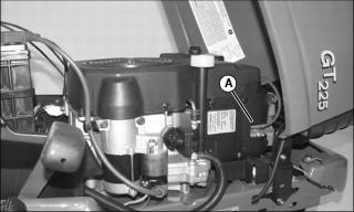 Service EngineEngine Warranty Maintenance StatementMaintenance, repair, or replacement of emission control devices and systems on this engine, which are being done at customers expense, may be performed by any non-road engine repair establishment or individual. Warranty repairs must be performed by an authorized John Deere dealer. Avoid FumesEngine OilUse oil viscosity based on expected air temperature range during period between oil changes. Preferred John Deere oils:If not using a preferred John Deere oil, use an oil with an API Service Classification SG or higher. Checking Engine Oil LevelNOTE: Check oil twice per day if engine is run over four hours per day. Make sure engine is cold when checking engine oil level. 1. Park machine safely. (See Parking Safely in Safety section.) 3. Clean area around dipstick (A) to prevent debris from falling into crankcase. 4. Remove dipstick. Wipe with clean cloth. · GT225 - Install dipstick in tube but do not tighten. Allow dipstick threads to rest on top of tube and rotate cap counterclockwise until it "clicks" or drops into place. · GT235 - Install and tighten dipstick. · GT245 - Install dipstick in tube but do not tighten. Allow dipstick threads to rest on top of tube. 7. Check oil level on dipstick. Oil must be between add and full marks (B). 8. If oil level is low, add oil to bring oil level no higher than full mark on dipstick. 9. Install and tighten dipstick. Lower hood. Changing Engine Oil and Filter2. Park machine safely. (See Parking Safely in Safety section.) 4. Put drain pan under drain valve (A). If available, install drain hose. 5. Open drain valve and drain oil into oil drain pan. Allow oil to drain completely. a. Wipe dirt from around oil filter (C). b. Place a drain pan or funnel under filter tray. c. Remove old filter and wipe off filter tray. d. Apply a light coat of fresh oil to filter seal. e. Install replacement oil filter by turning oil filter to right (clockwise) until rubber seal contacts filter base. Tighten filter an additional one-half turn. · GT235 and GT245: 1.7 L (1.8 qt) 10. Install and tighten dipstick. 11. Start and run engine at idle to check for leaks. Stop engine. Fix any leaks before operating. 12. Check oil level, add oil if necessary. Cleaning Air Intake Screen and Engine Fins