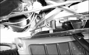 5. Fasten hose to hole in foot rest support with tie strap (C).