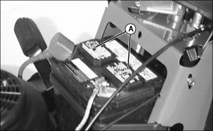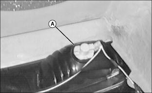 3. Install drain hose on battery cap (A) using a small hose clamp. See your John Deere dealer to order drain hose and clamp.
