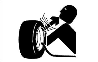 · When inflating tires, use a clip-on chuck and extension hose long enough to allow you to stand to one side and NOT in front of or over the tire assembly.