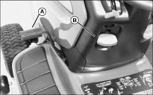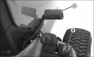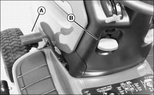 2. Push lift pedal (A) to raise mower deck to highest (transport) position.