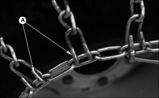 5. Drape chain over tire with the lever fastener on outside of tire and cross link hooks (A) facing upward and away from tire.