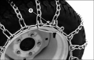 IMPORTANT: Avoid damage! Loose tire chains can cause machine damage. Periodically check chain tightness and adjust as necessary.