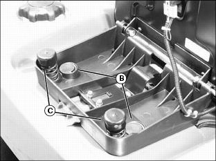 9. If lever does not lock, lower the mower deck, and adjust lift links (C).