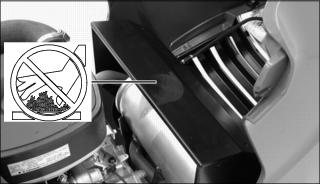 · Remove grass and debris from engine compartment and muffler area, before and after operating machine, especially after mowing or mulching in dry conditions.